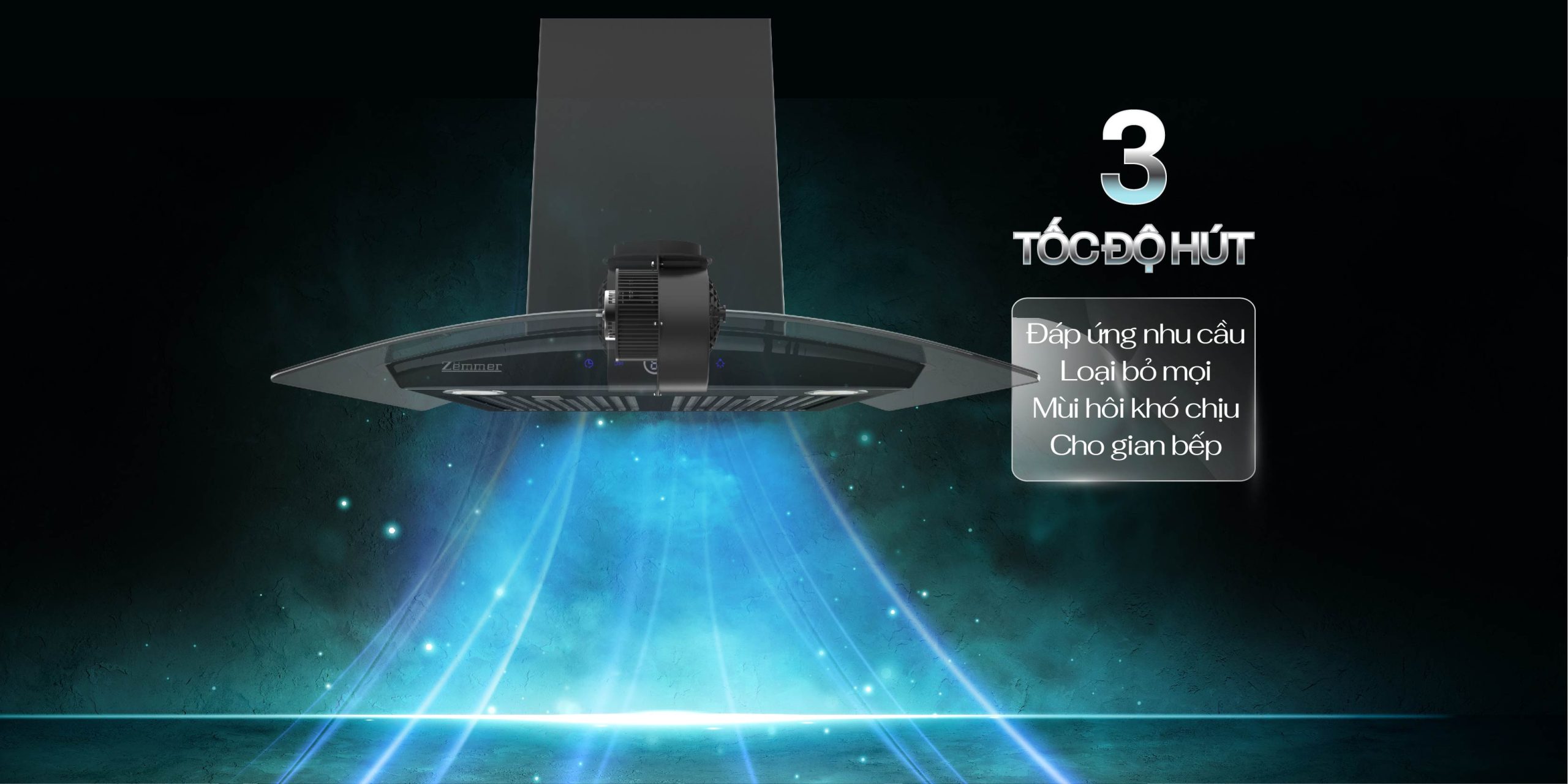 Nhờ độngc ơ quạt hút mùi mạnh mẽ và bền bỉ, oại bỏ 99% mùi dầu mỡ và mùi thức ăn khó chịu